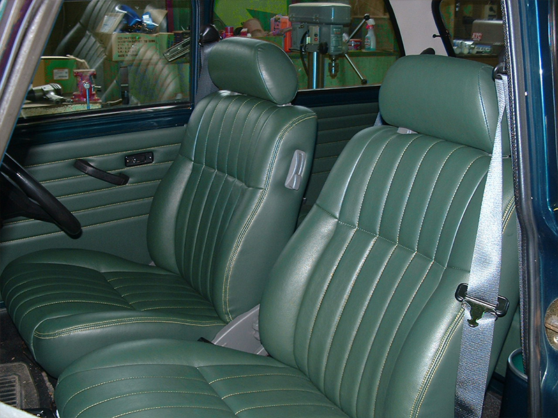 ボディーカラーに合わせて、グリーンのレザーで張替え。